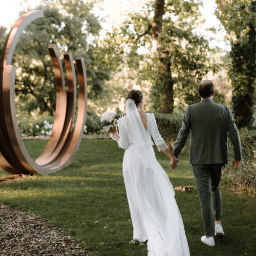 Ce nouvel espace dédié à la célébration de vos vœux de mariage a été choisi pour sa confidentialité. Entourés de vieilles pierres, à l’ombre des chênes et bénéficiant d’une vue sur le vignoble et sur une œuvre majestueuse de Loris Cecchini, cet instant ne peut que rester graver dans les esprits.