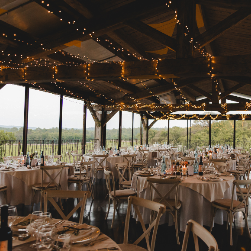 Dans un cadre champêtre et préservé, nos espaces de réception vous proposent plusieurs ambiances, entre vieilles pierres du XIIIe siècle et oeuvres contemporaines monumentales qui émaillent le paysage. La verrière panoramique, juchée sur le toit du chai, domine une mer de vignes et permet de profiter d’une vue splendide sur le massif des Maures. La noblesse de ses matériaux, bois brut et verre, en font un écrin qui contribuera à faire de votre réception une expérience inoubliable.